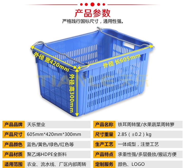 產(chǎn)品名稱:鐵耳周轉(zhuǎn)筐、水果蔬菜周轉(zhuǎn)籮