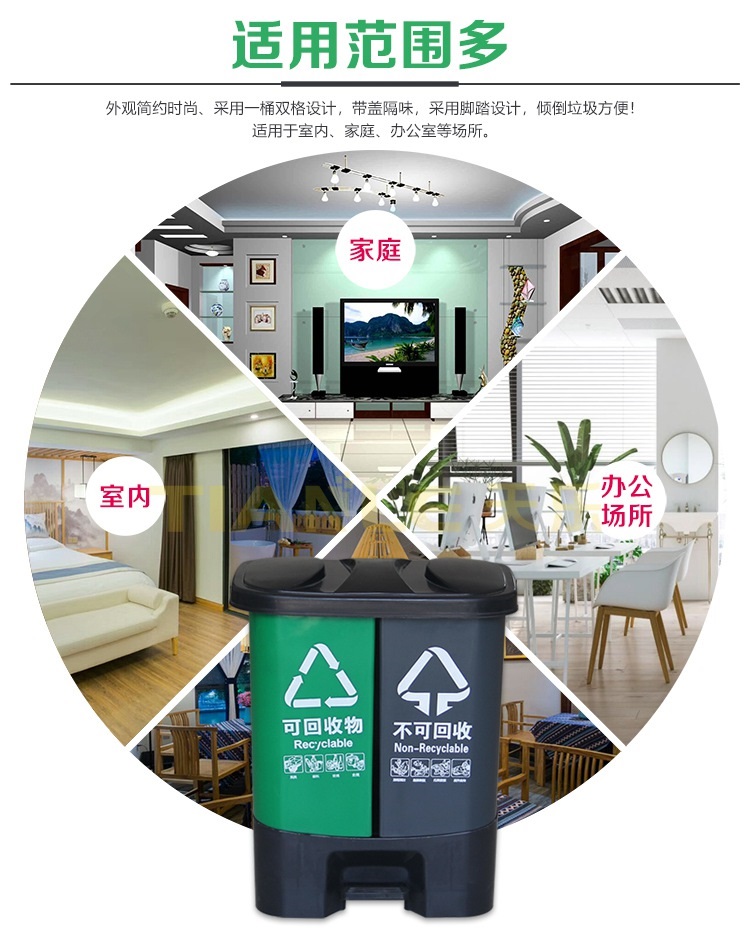 1、雙桶設(shè)計并帶提手,傾倒垃圾方便快捷,拆卸雙桶設(shè)計可單獨拿出,方便垃圾分類和清洗。